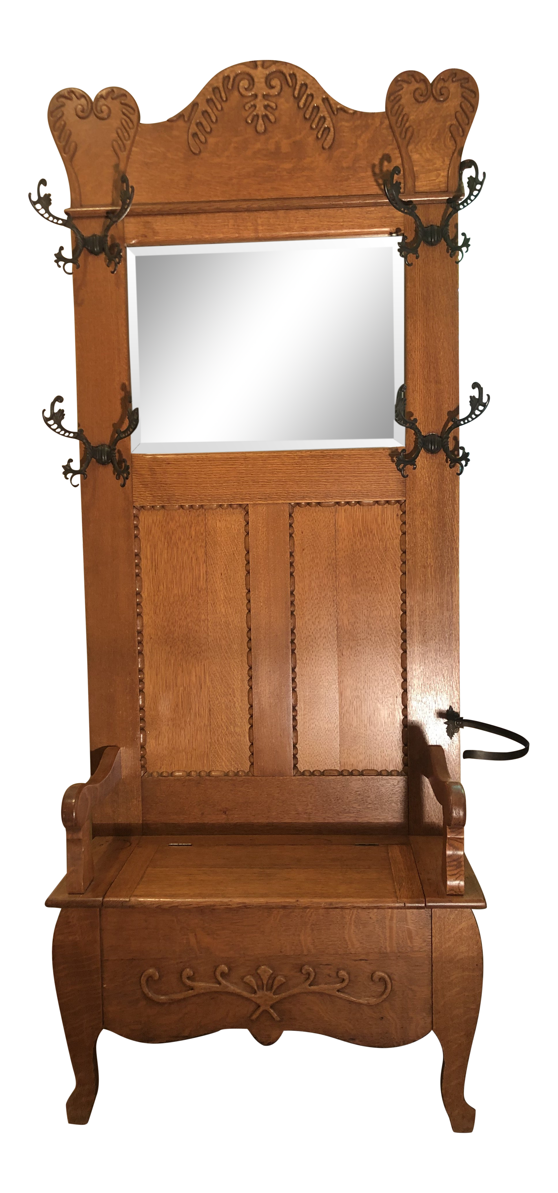 Used Vintage Antique Hall Tree With Storage Bench For Sale In