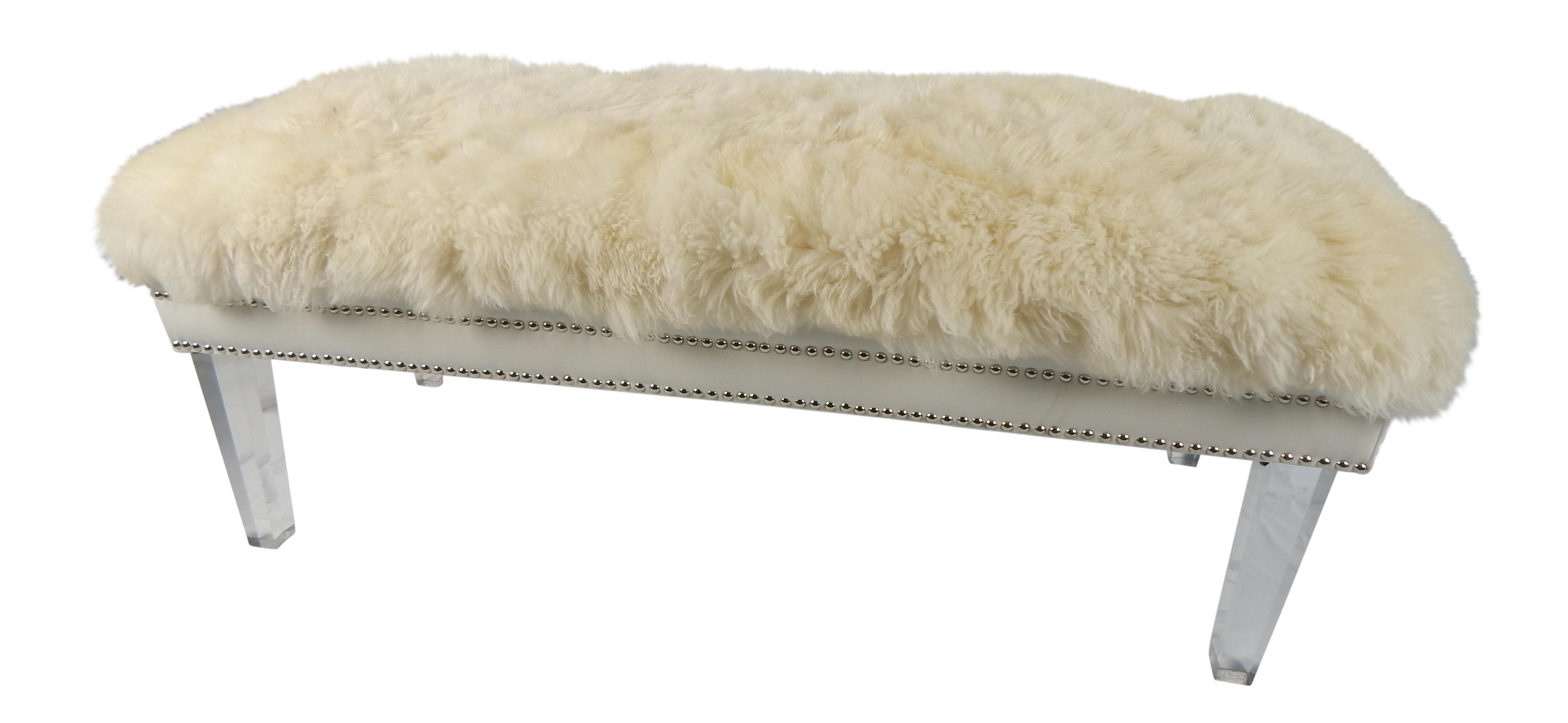 Tibetan Lamb Lucite Bench Natural Available In 7 Colors