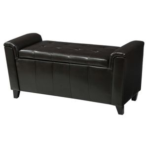 Shop Black Leather Tufted Arm Storage Bench Ottoman Overstock