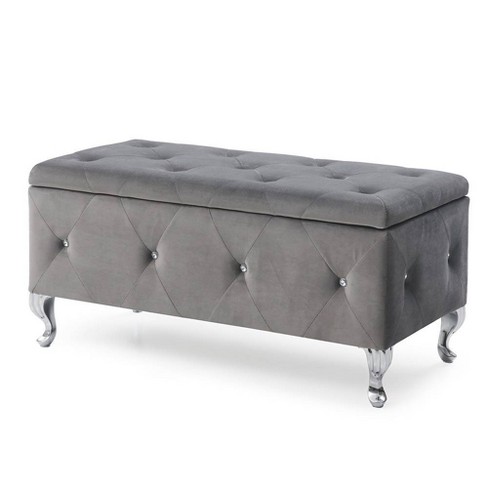 Crystal Tufted Storage Bench Gray Ac Pacific Target
