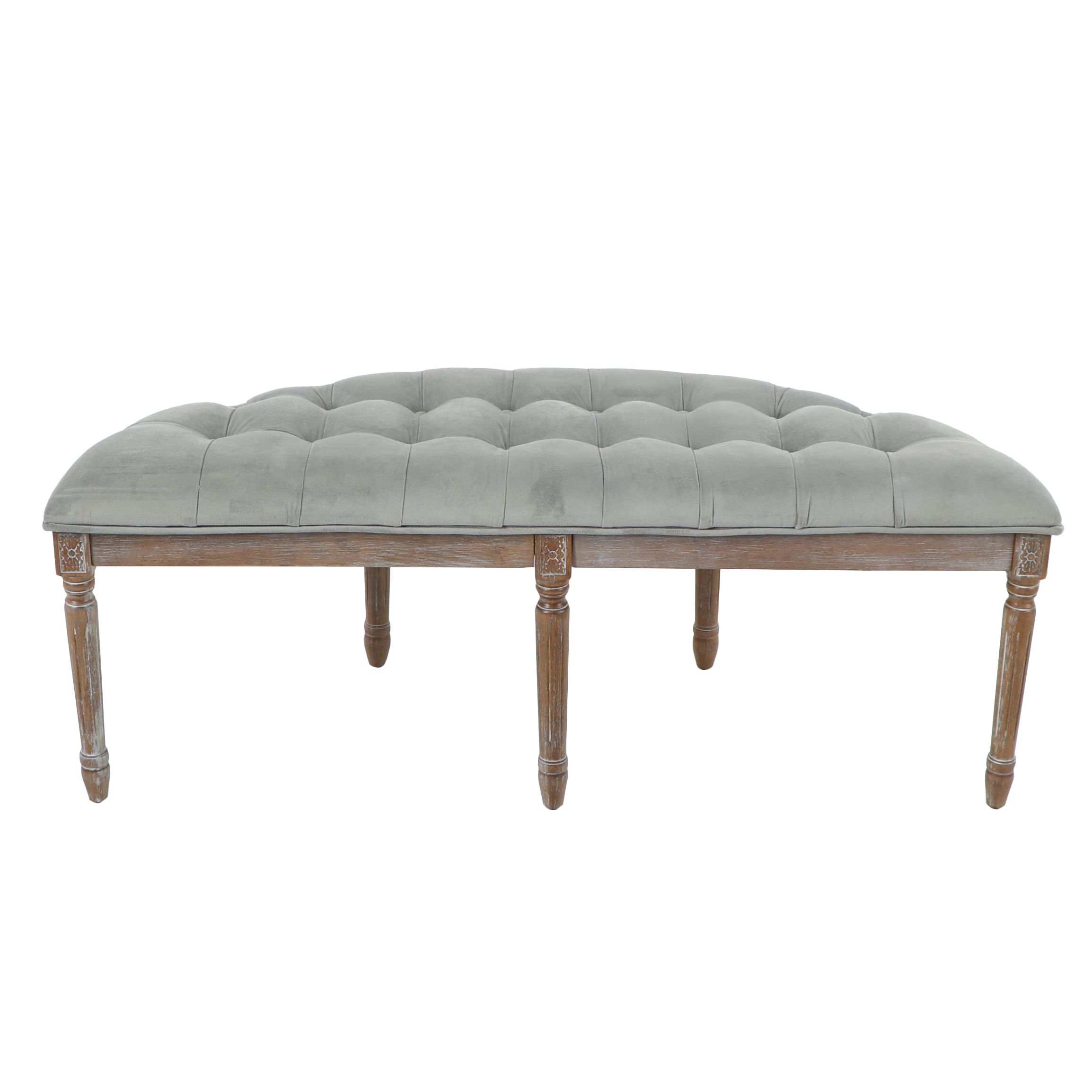 Savona Gray Tufted Fluted Wood Demilune Bench