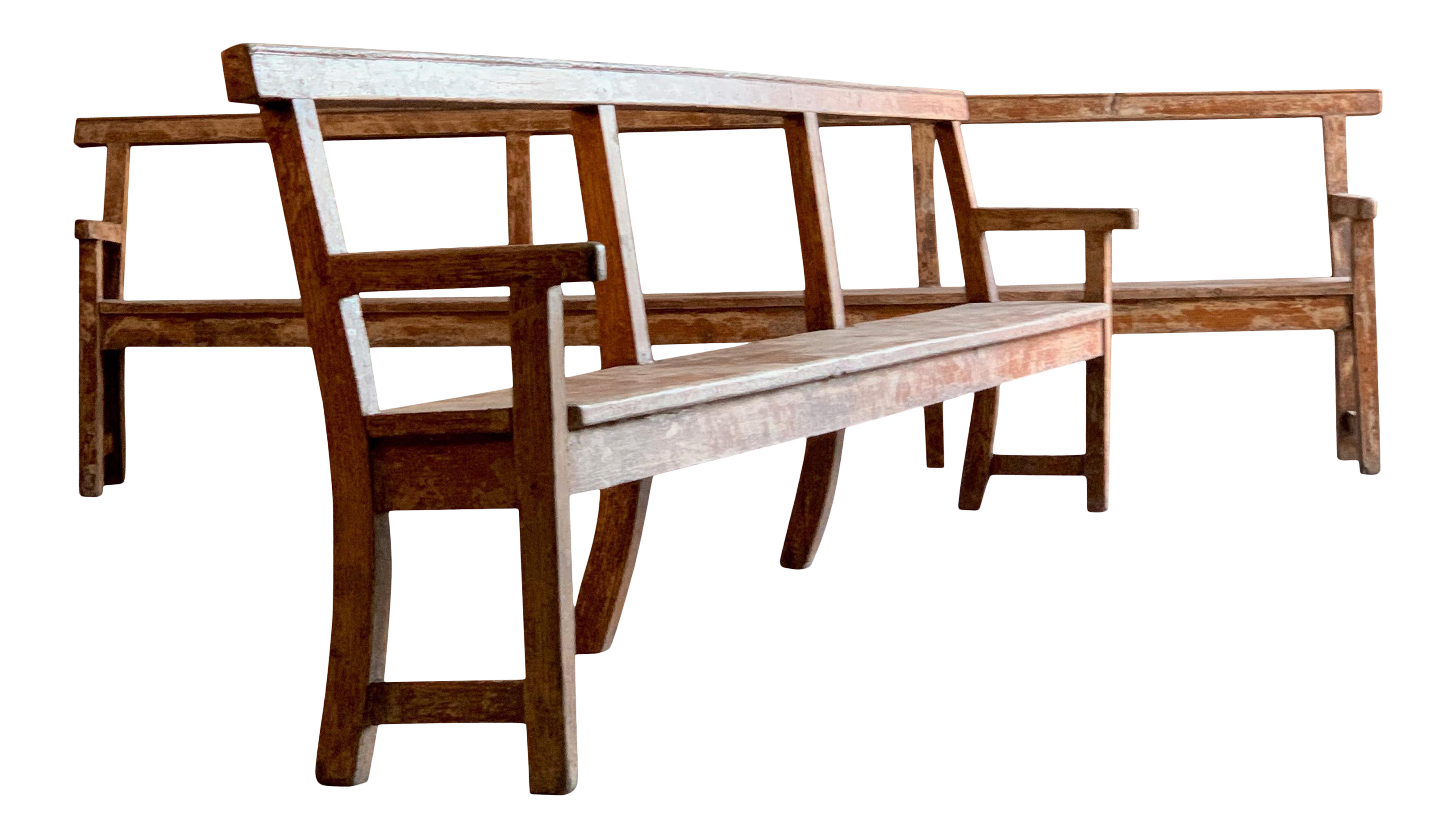Antique French Oak Benches Long Painted Distressed 19th Century