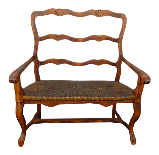 Vintage French Country Rustic Rush Seat Bench Settee Chairish
