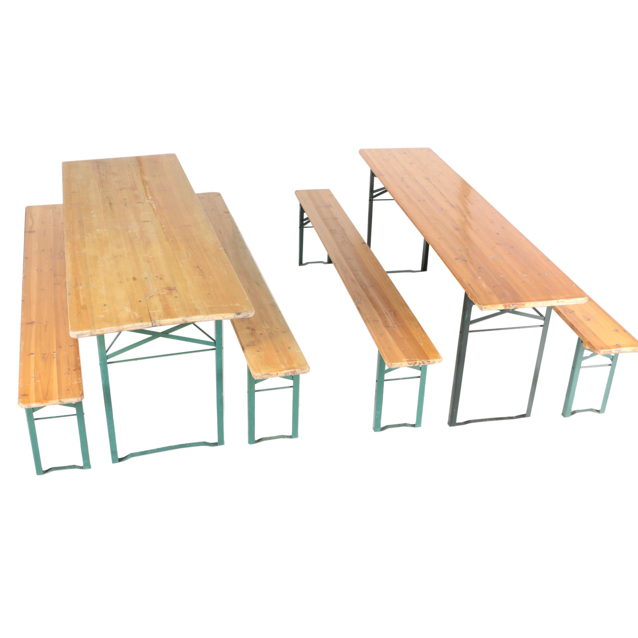 Original Vintage German Beer Fest Table And Bench Sets With An