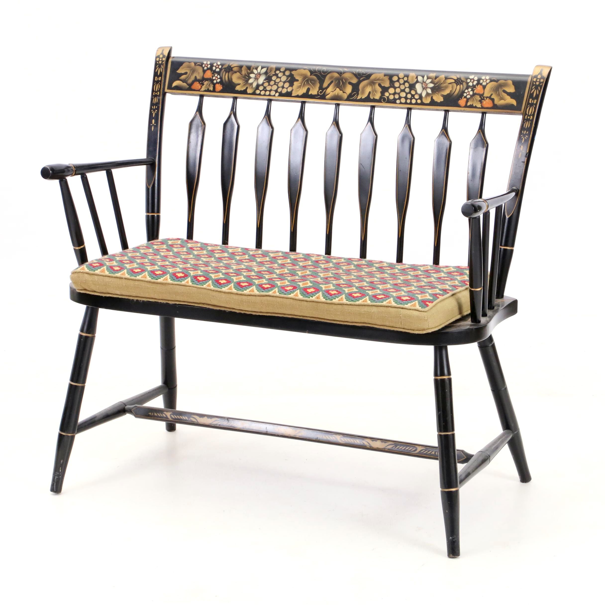 Hitchcock Stenciled Bench Black Harvest Riverton Windsor Style