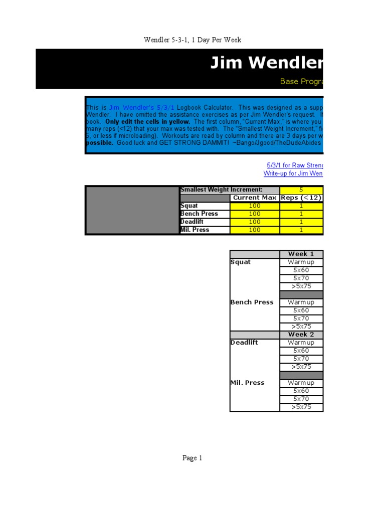 10 Wendler S 5 3 1 Program Spreadsheets Resource Page Dr Workout