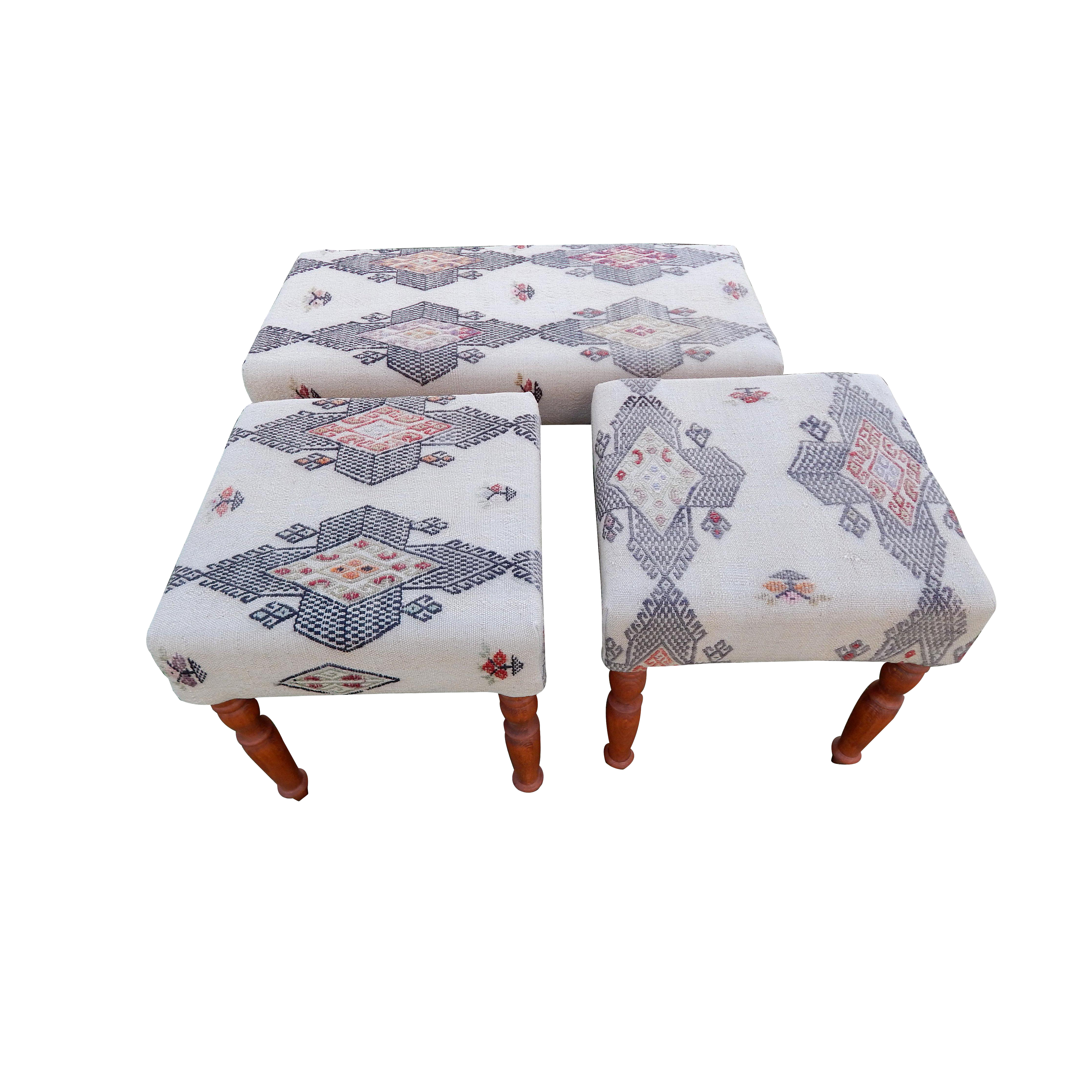 Set Of 3 Kilim Bench Mango Wood Frame Knock Down Legs Stools Sitting Benches Ebay