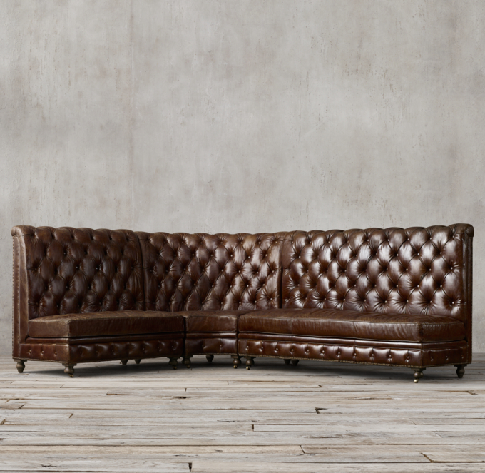 Leather Settees Or Banquettes Triple Tufted Pull Up Leather Back