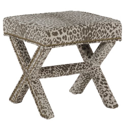 X Bench Upholstered In Leopard Print Sunbrella With Brass Nails