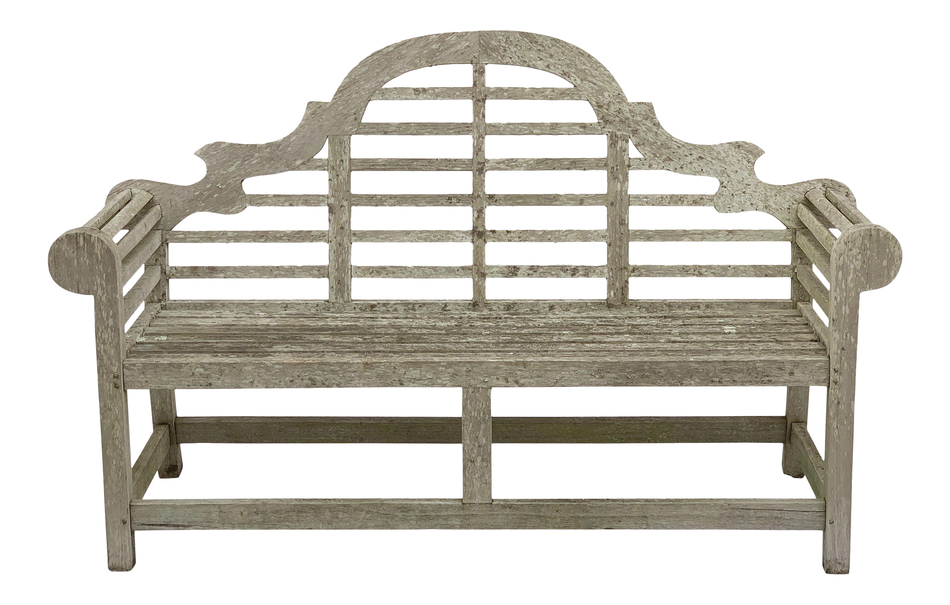 Long Heavily Lichened Silvered English Lutyens Style Bench In