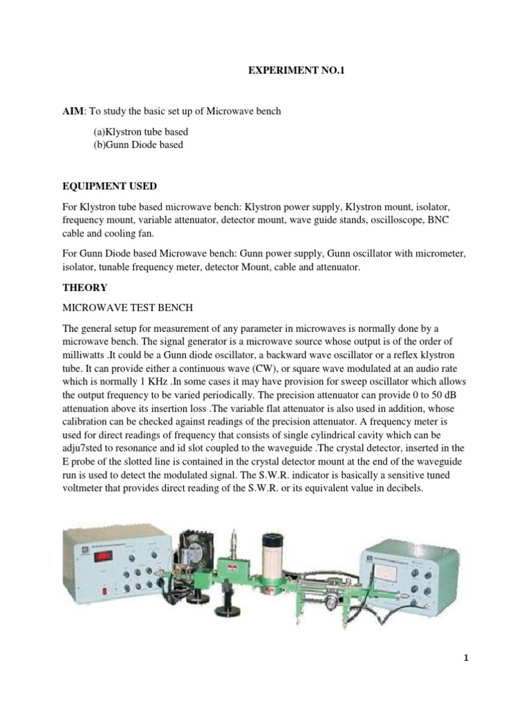 Manual Of Experiments Related To Microwave Test Bench Detector Radio Microwave