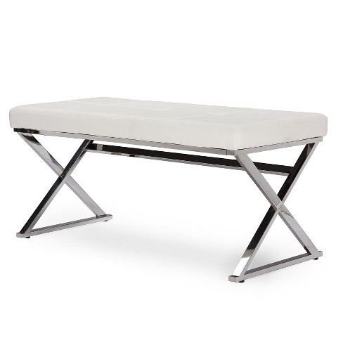 Ottoman Modern Upholstered Bench White Leather Tufted Extra Seat