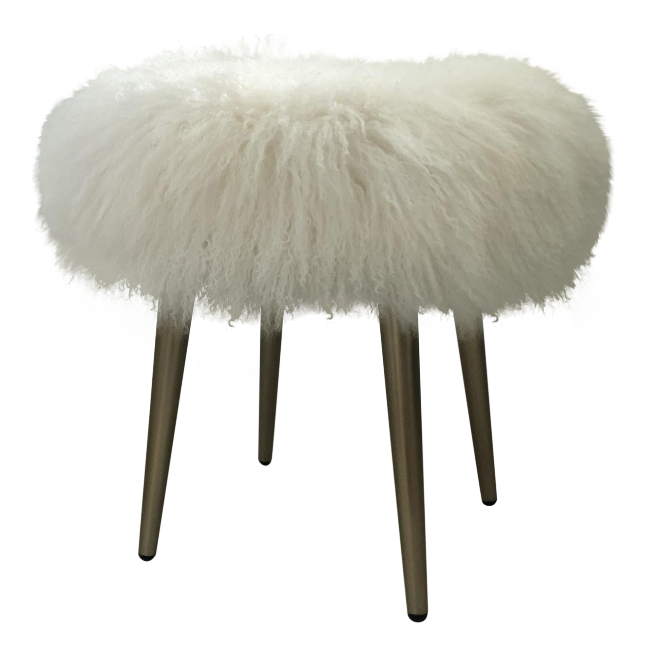Mongolian Lamb Stool Fur Tibet Lamb Bench Vanity Seat Silver Legs