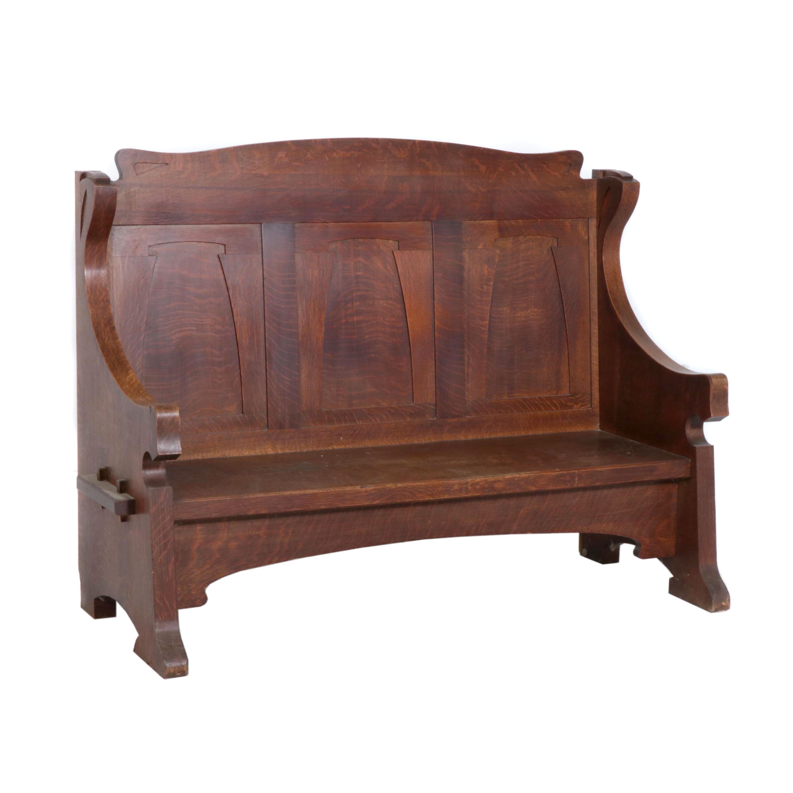C 1900 American Quarter Sawn Oak Hall Bench Lofty Marketplace