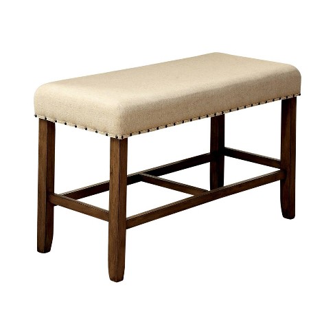 Buy Wooden Dining Bench With Fabric Padded Seat And Nailhead Trims