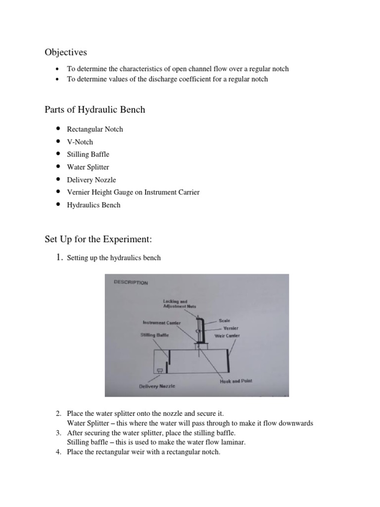 Experiment 9 Flow Over Weirs Applied Fluid Mechanics Lab Manual