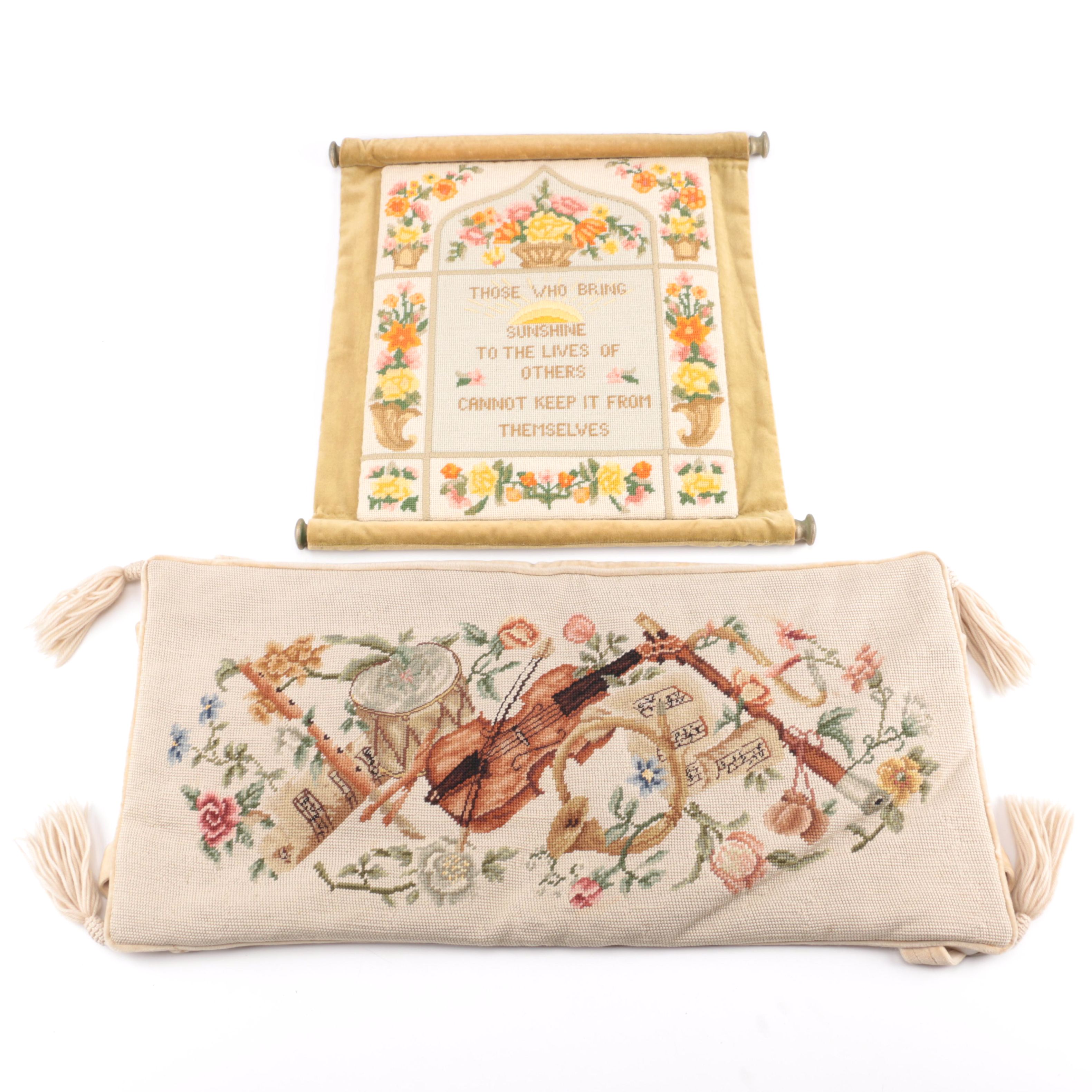 Needlepoint Embroidery Wall Scroll And Piano Bench Cover Ebth