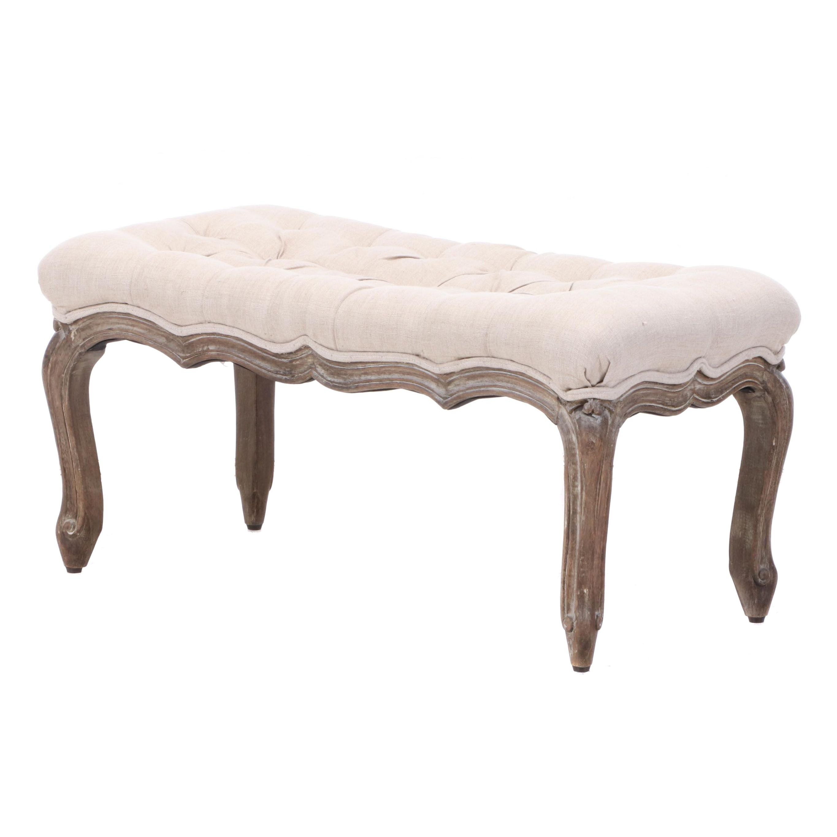 Pottery Barn Louis Xv Style Tufted Linen Bench Ebth