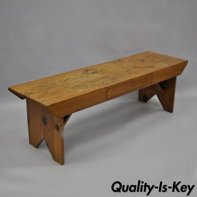 Handmade Pine Wood Vtg Bench Coffee Table W Drawer Primitive