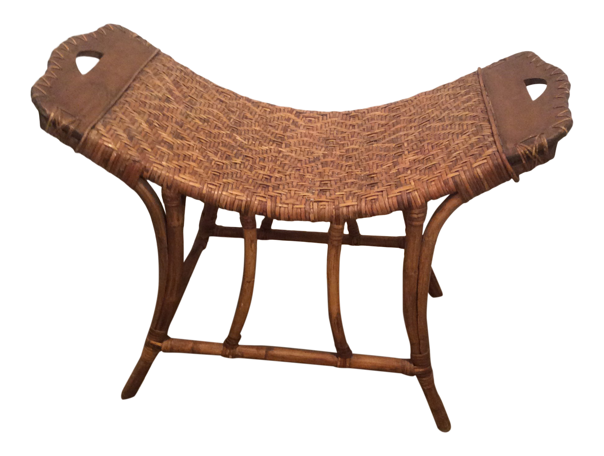 Mid Century Modern Teak And Rattan Cord Stool Bench Seat Niels