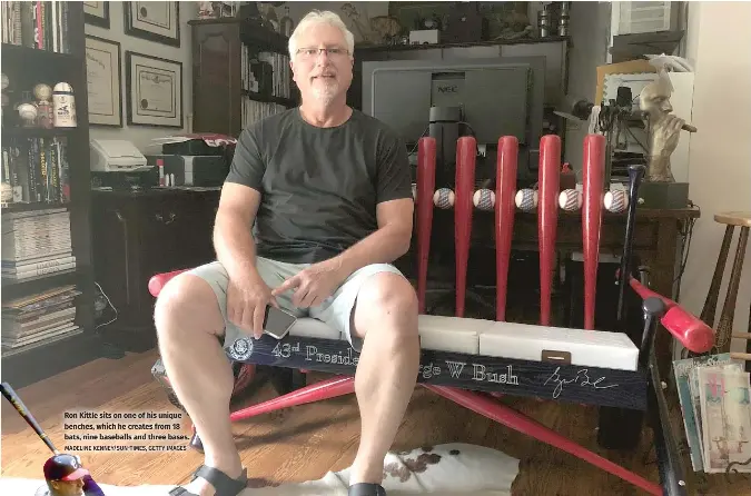 Baseball benches with former outfielder ron kittle of the chicago white sox. 89 seconds with ron kittle. In his shop kittle has parts of a pink bench signed by talk show host ellen degeneres.
