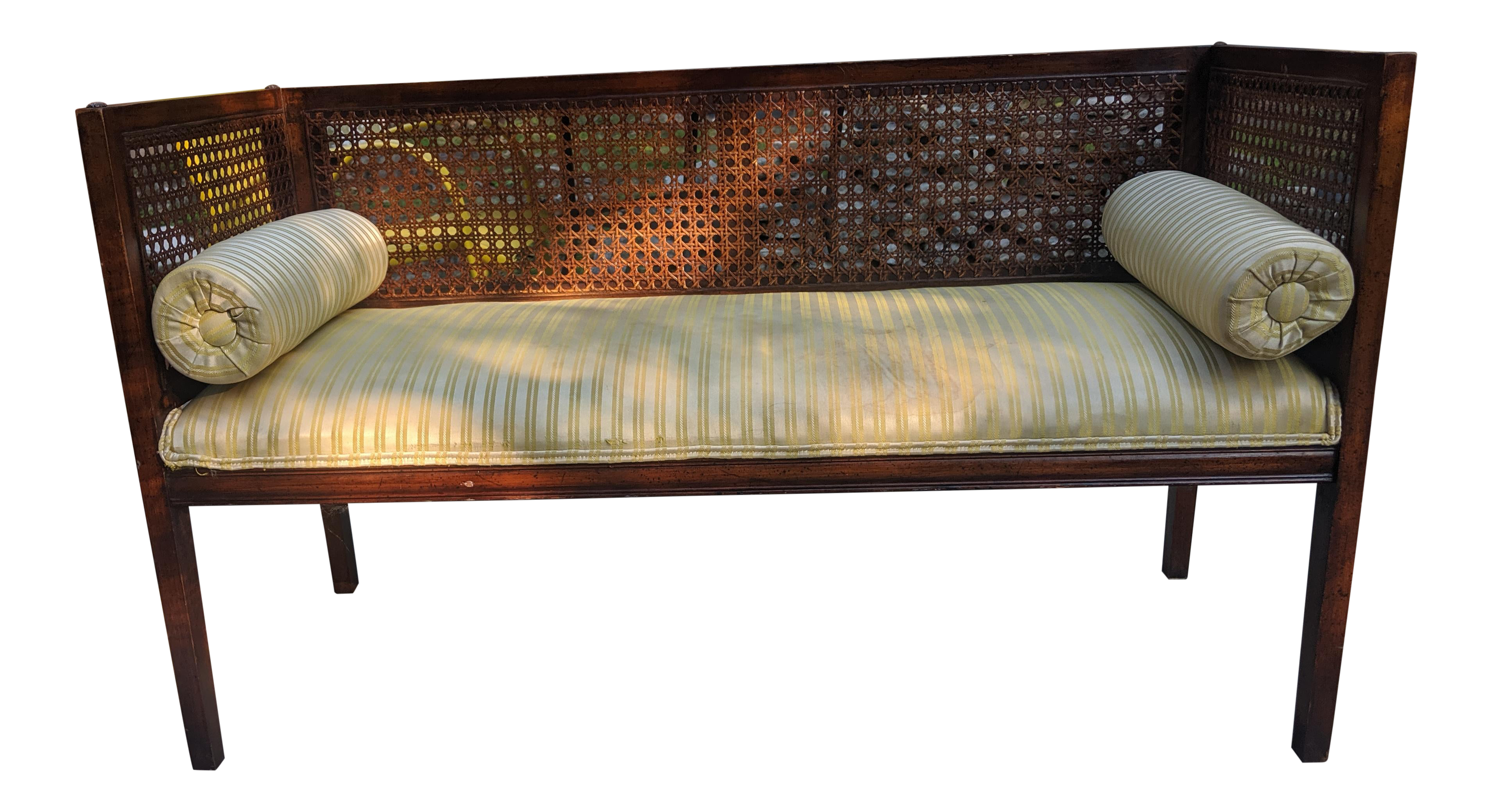 Sold Vintage French Country Tufted Cane Settee Loveseat Bench In