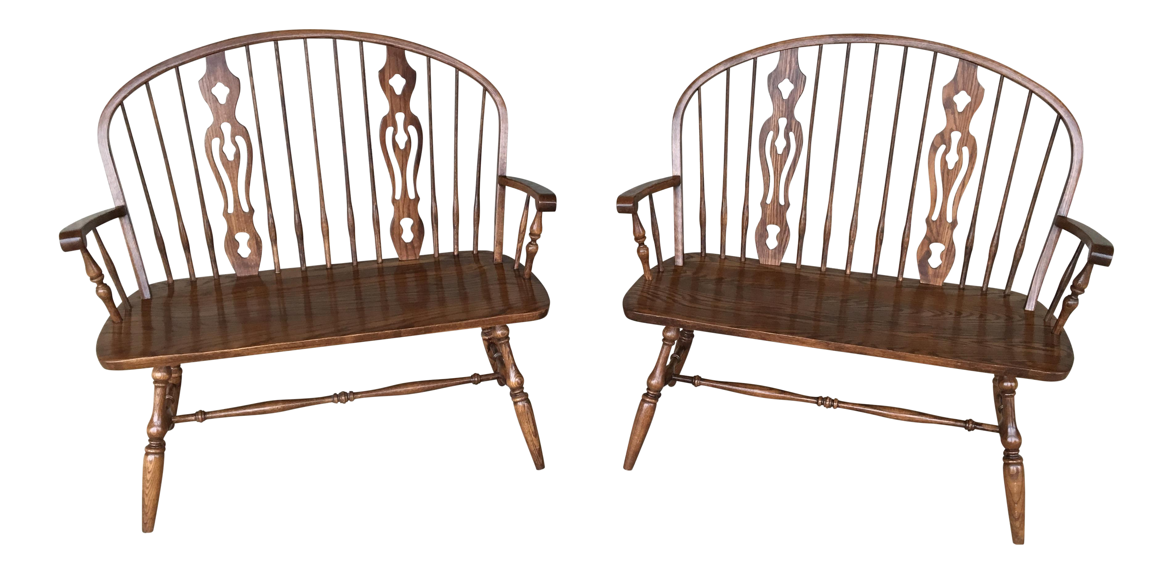 Dinaire Furniture Colonial Solid Oak Deacons Benches A Pair