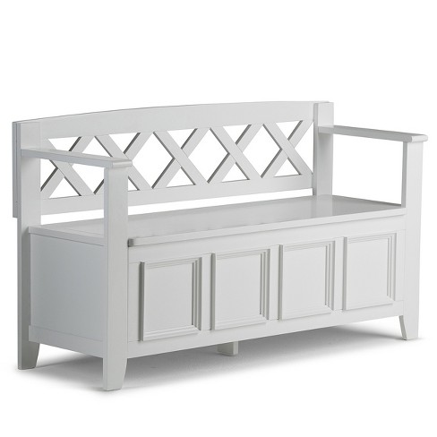 Simpli Home Warm Shaker Solid Wood Entryway Storage Bench In