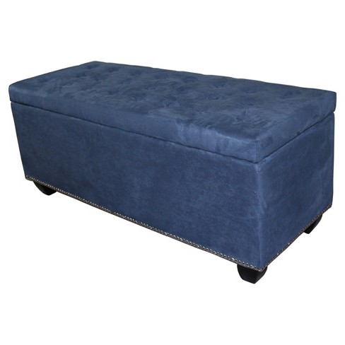 Unbranded Tufted Blue Suede Storage Bench Hb4660 The Home Depot