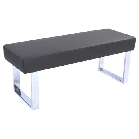 Amanda Contemporary Dining Bench In Gray Faux Leather And Chrome