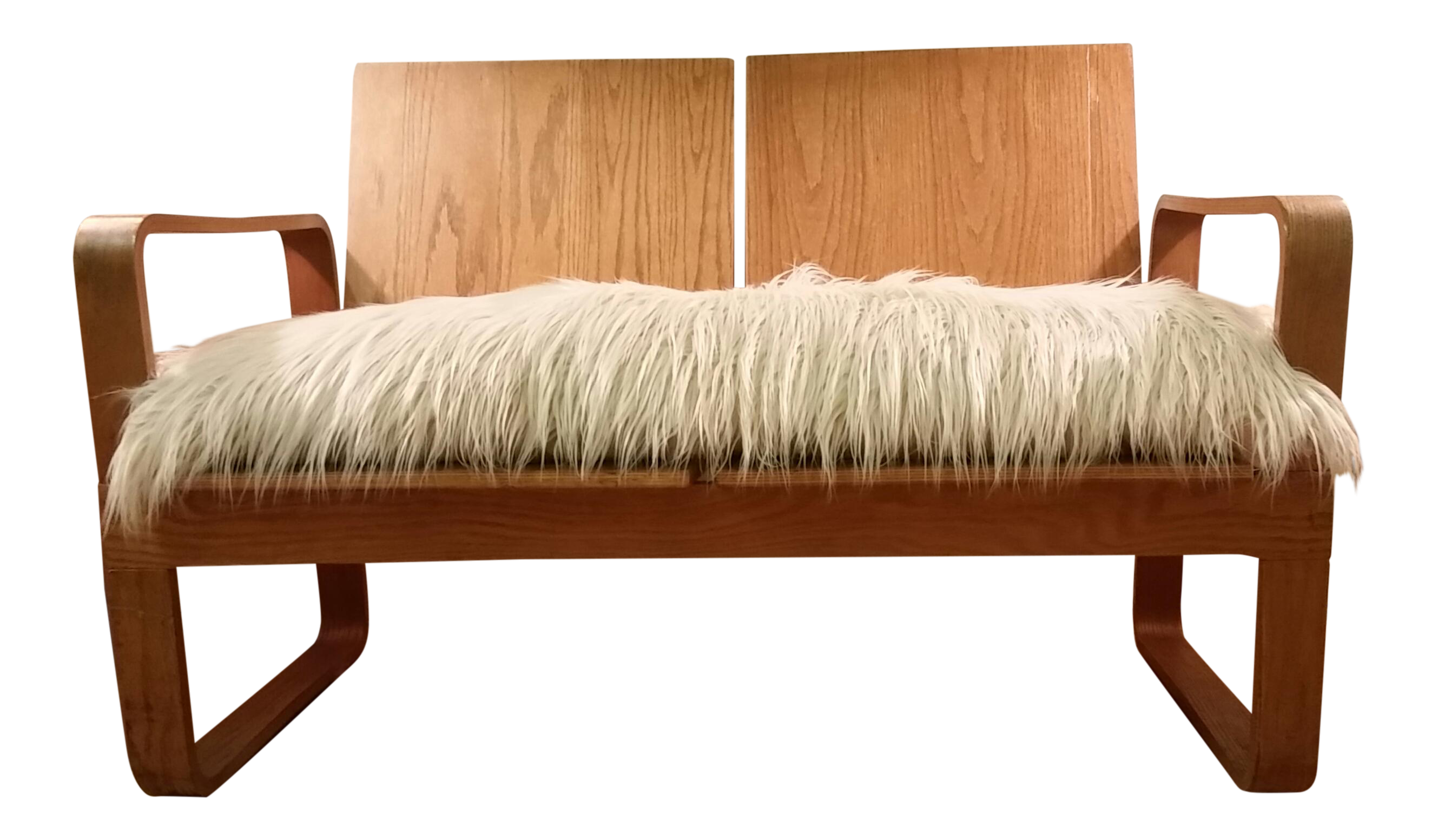Vintage Modern Oak Bentwood And Chrome Two Seat Settee Or Bench