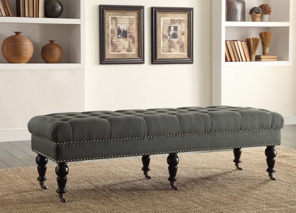 Large Charcoal Charlotte Tufted Bench Kirklands