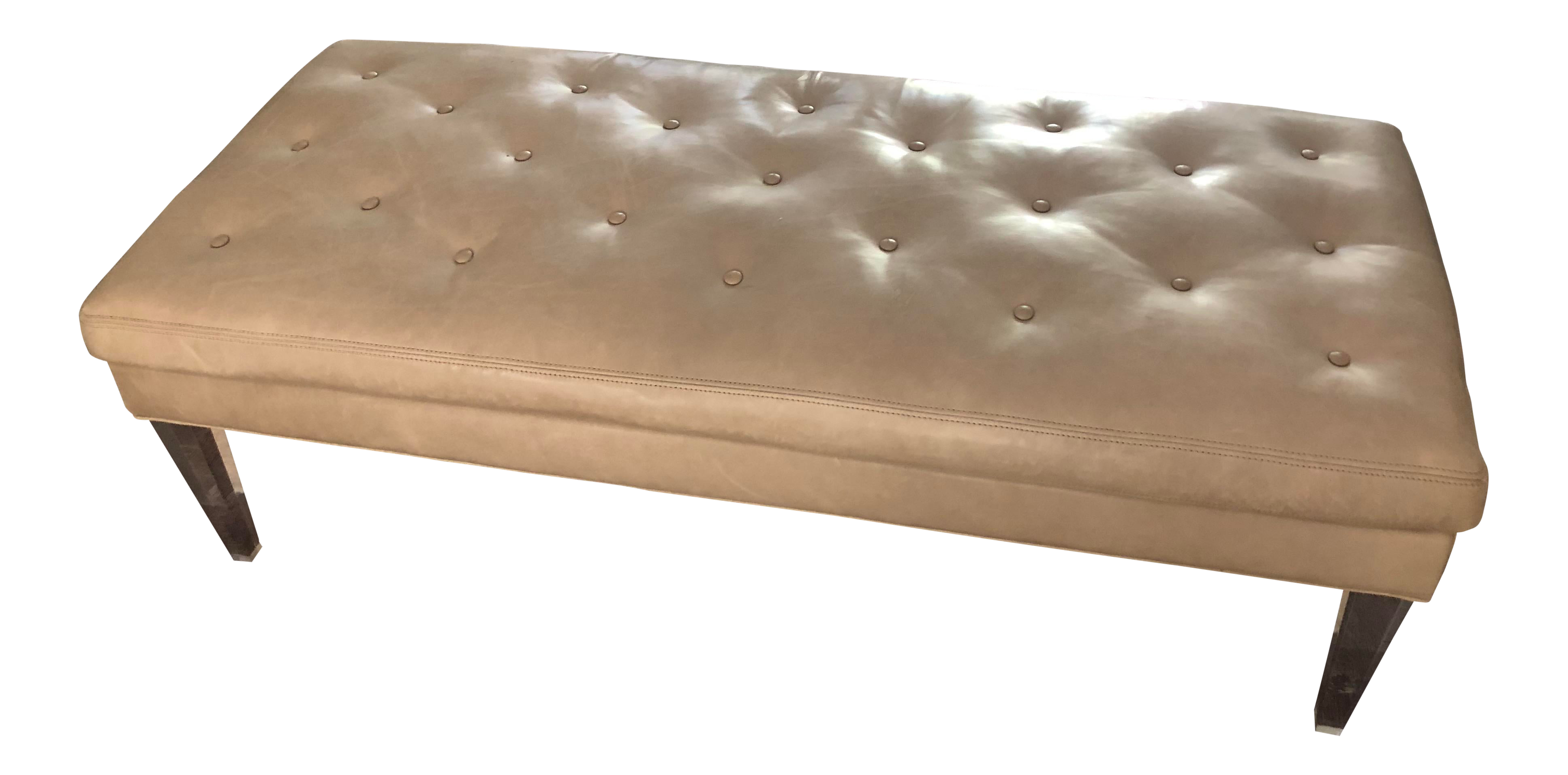Lee Industries Leather Button Tufted Bench With Lucite Legs Chairish