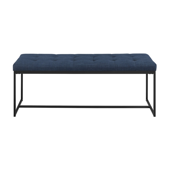 Blue Linen Tufted Bench With Metal Base Kirklands