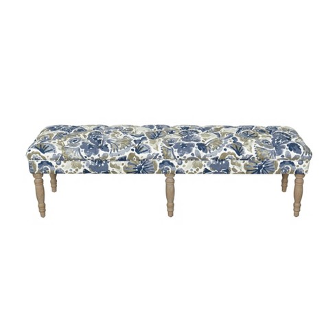 Carolina Tufted Bench With Nailhead Trim Floral Gray Homepop
