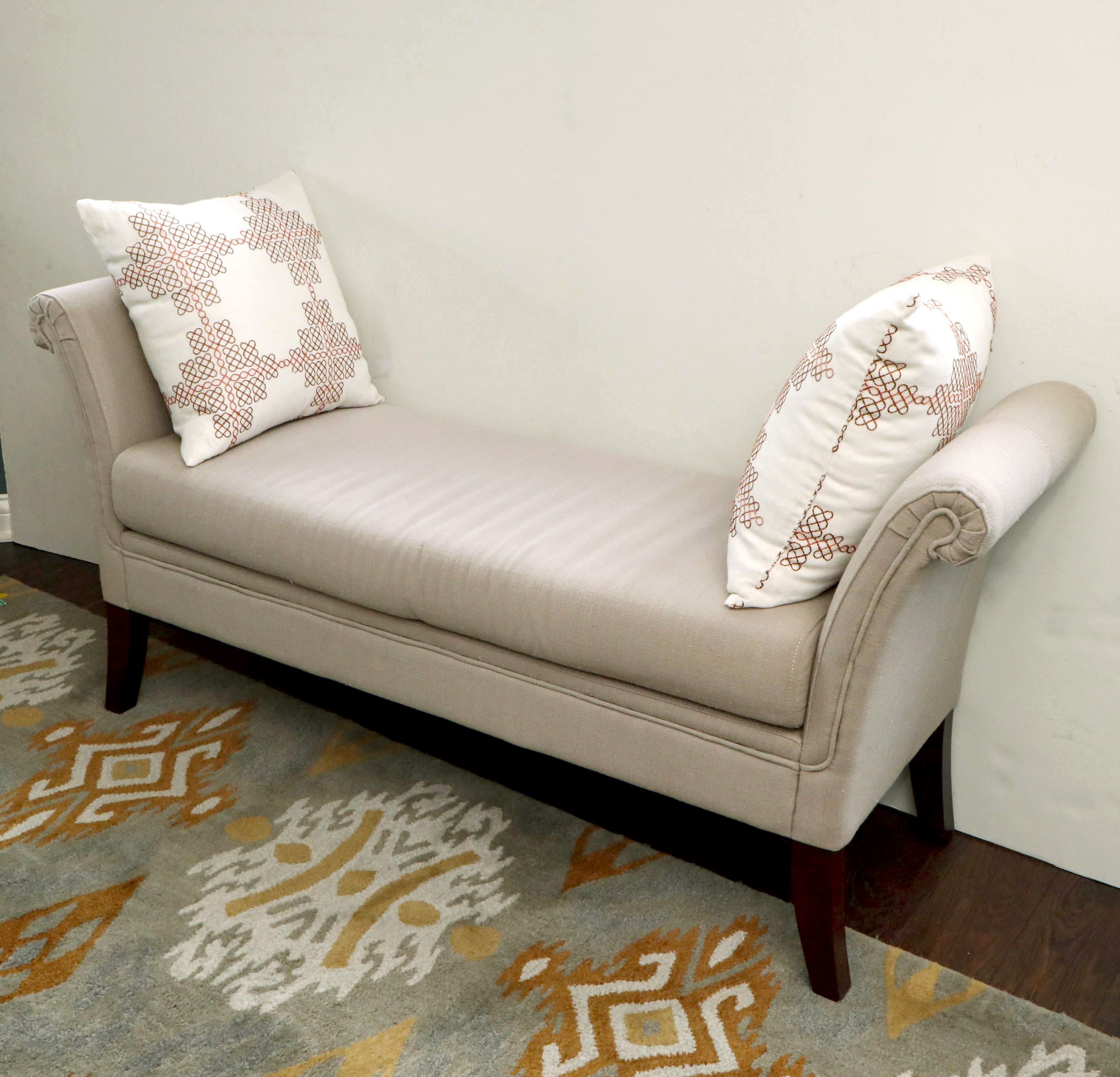 Tan Upholstered Rolled Arm Bench Ebth