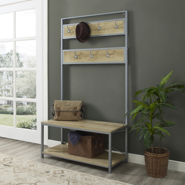 White Oak Industrial Hall Tree Bench Kirklands