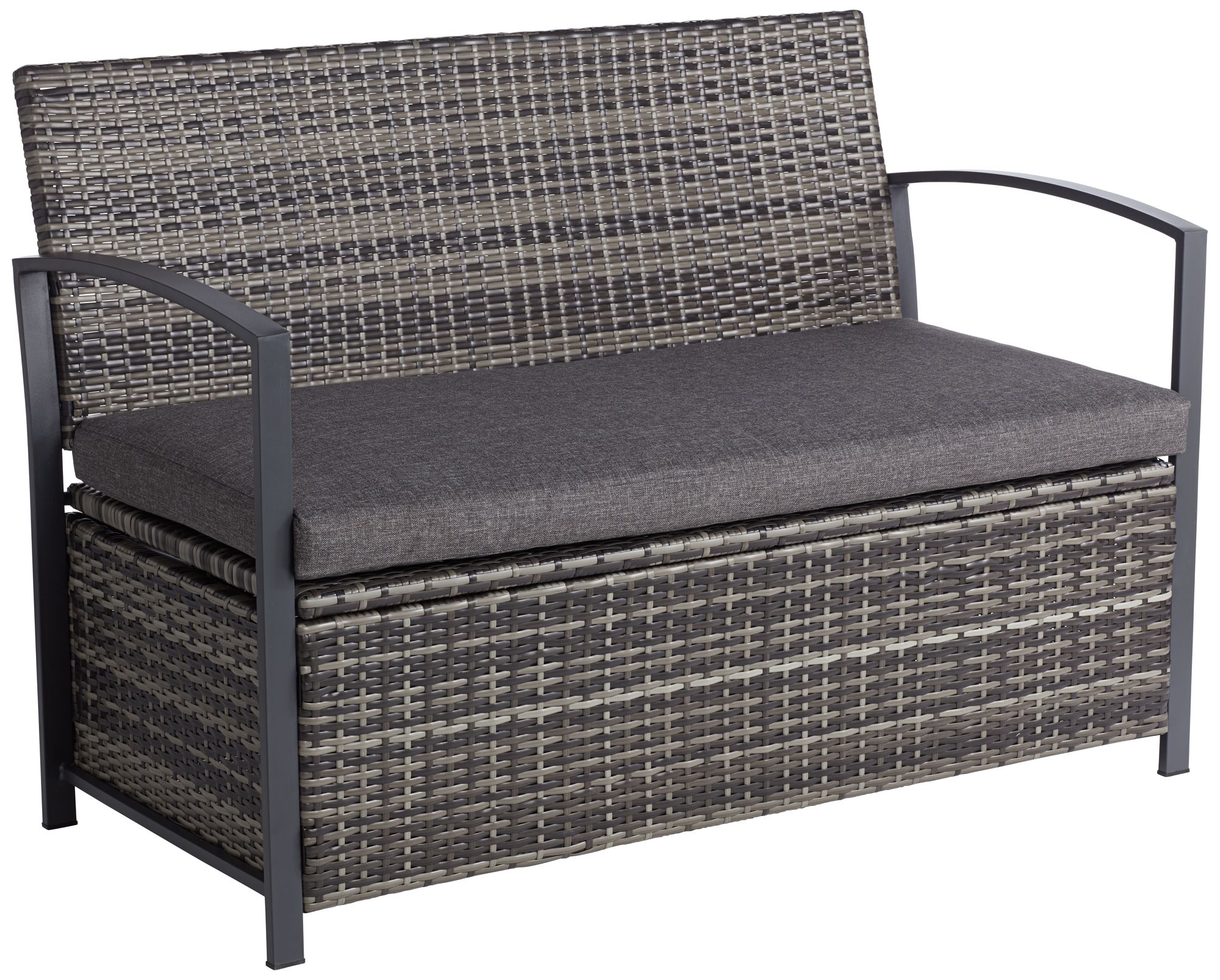 Black Wicker Bench Patio Outdoor Rattan Garden Seat Cushion