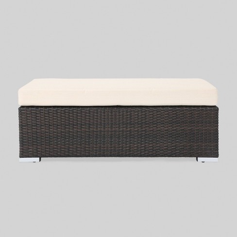 Wing Wicker Patio Storage Bench Multi Brown Christopher Knight