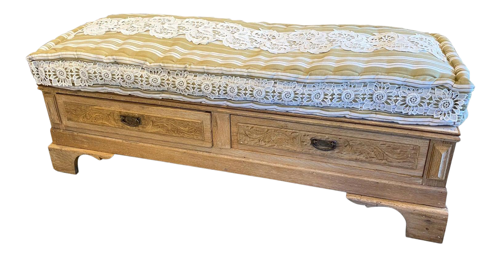 19th Century French Wood Banquette Bench With Cotton Cushion And Storage Chairish