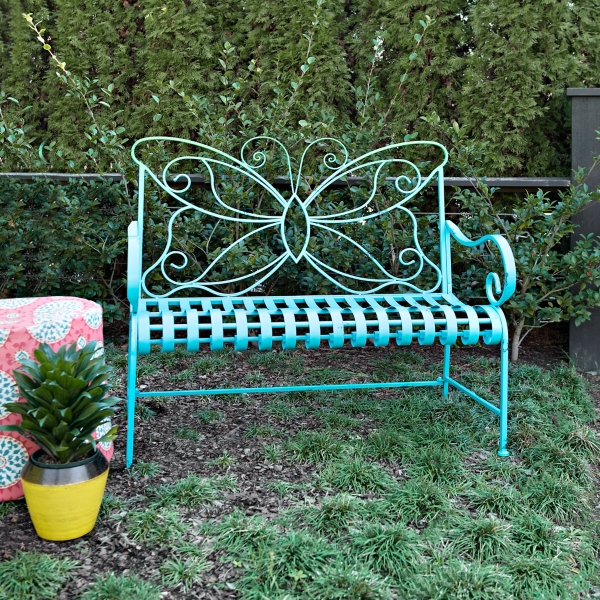Turquoise Butterfly Metal Bench Kirklands