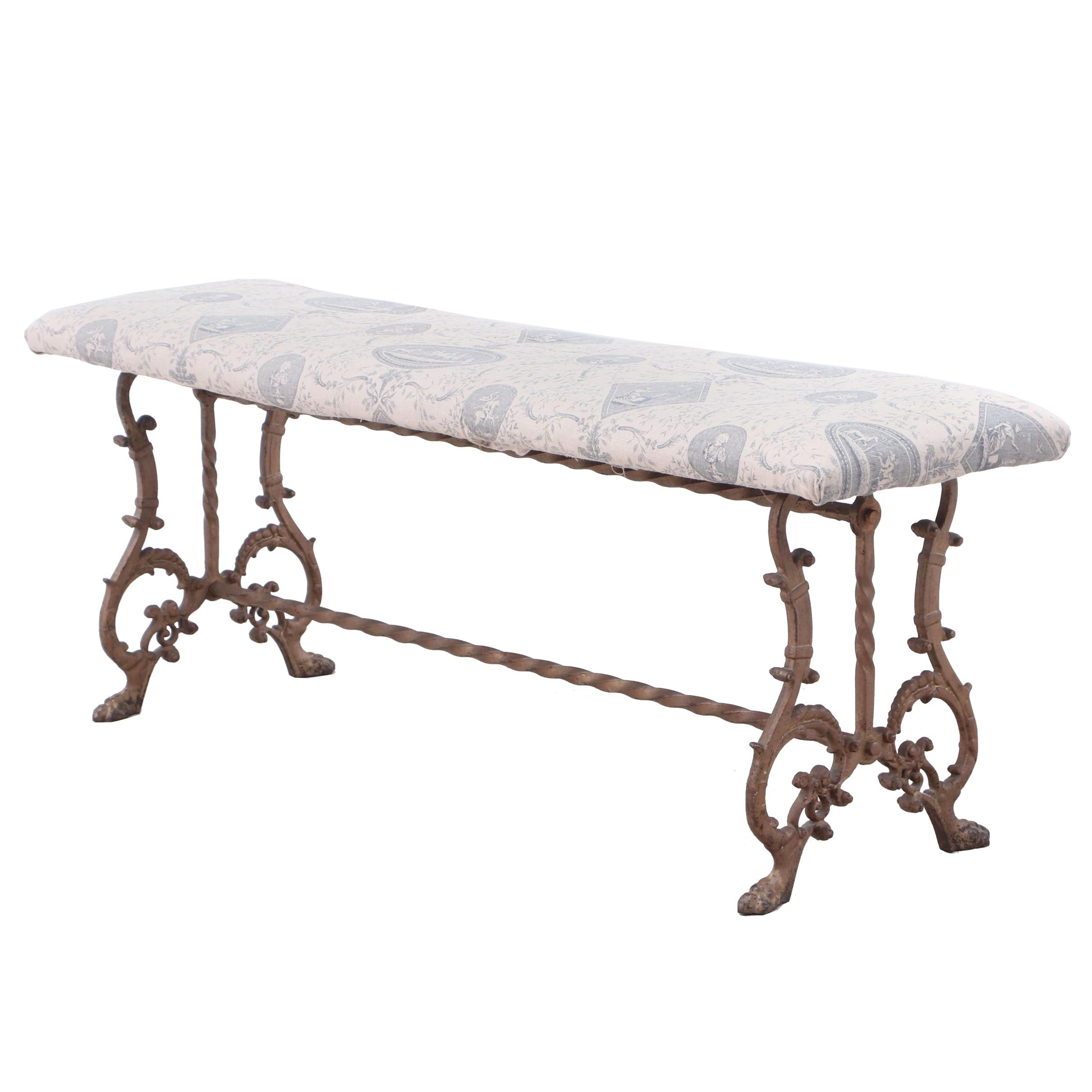 Upholstered Wrought Iron Indoor Bench Ebth